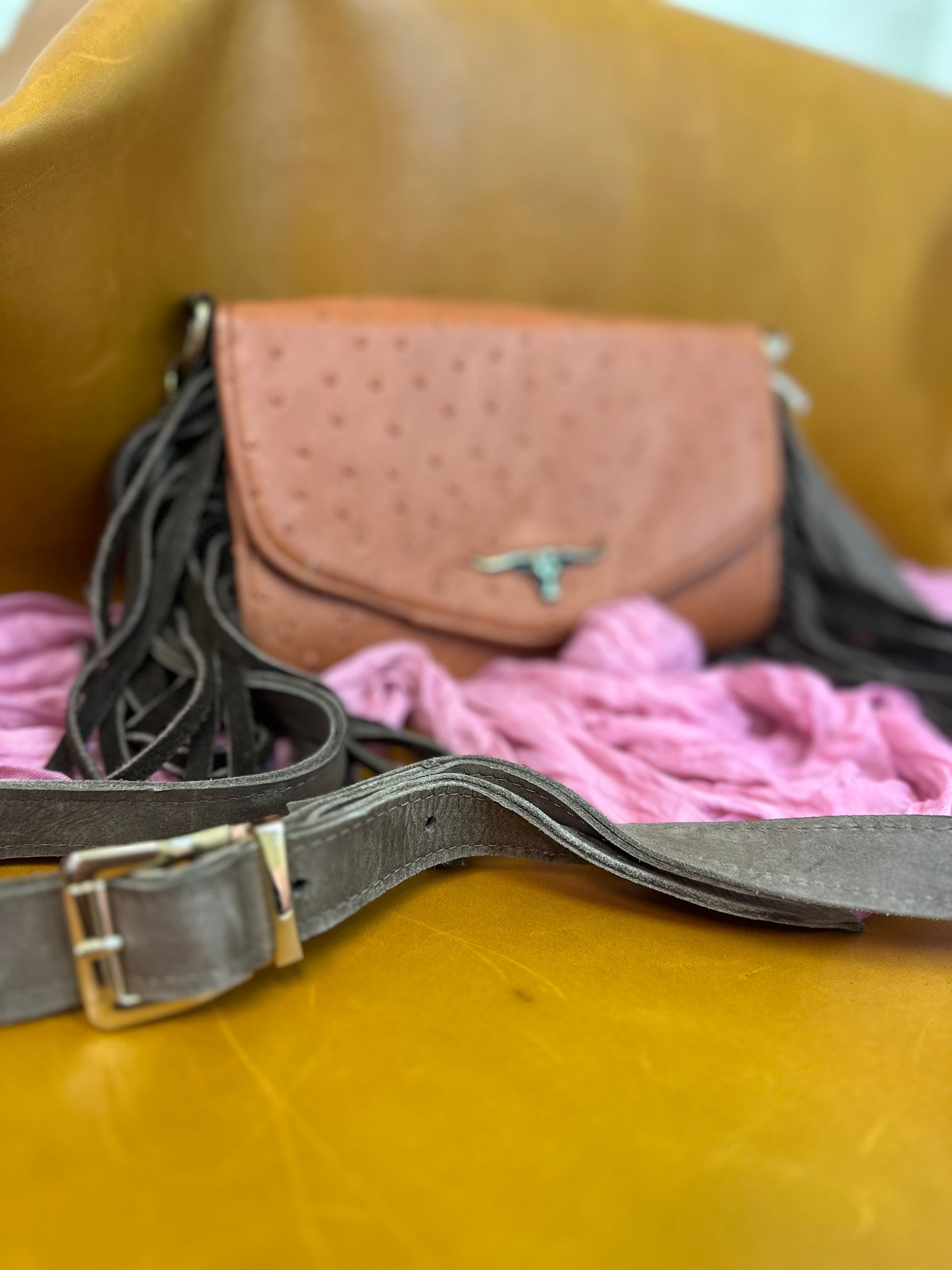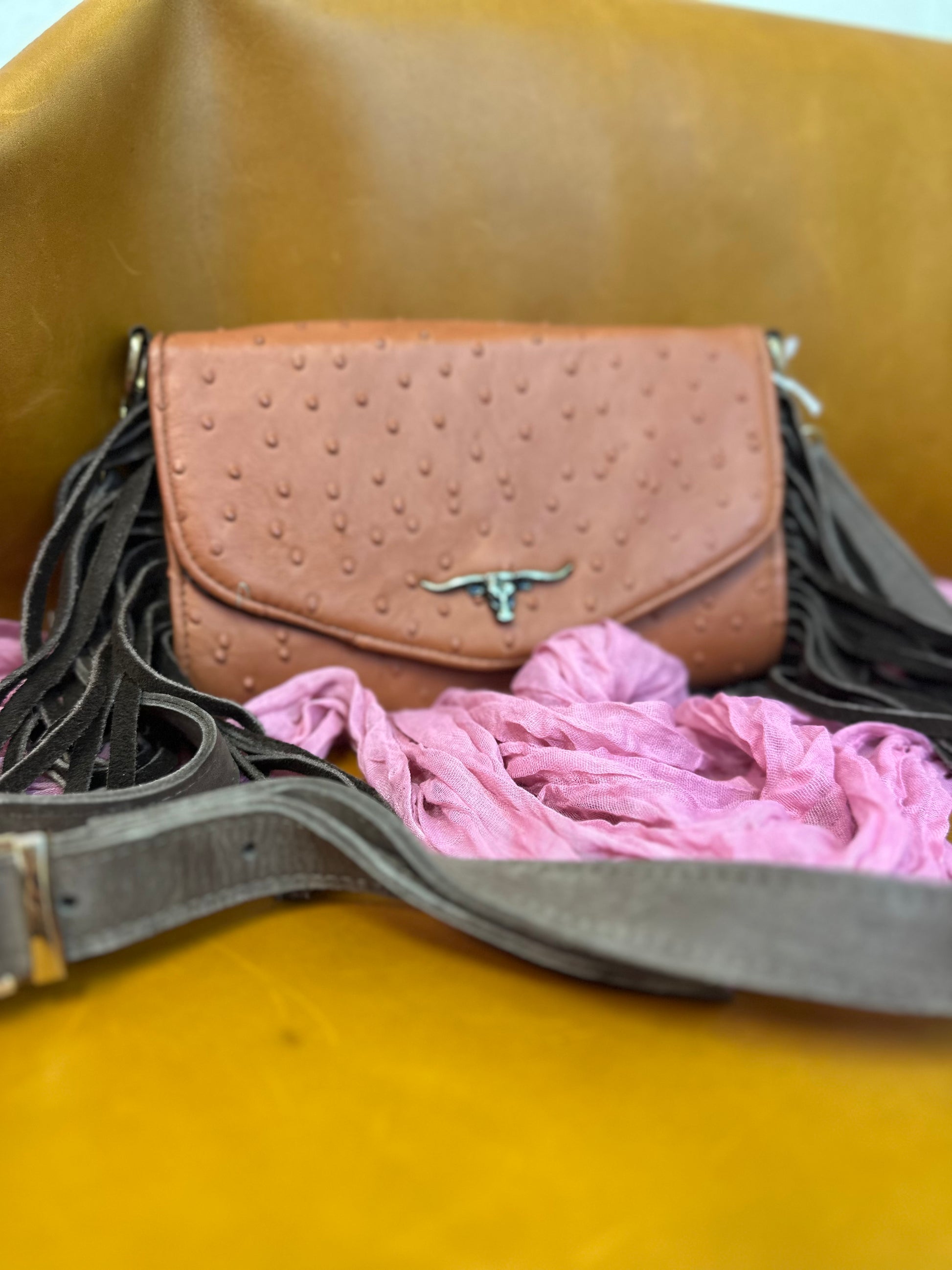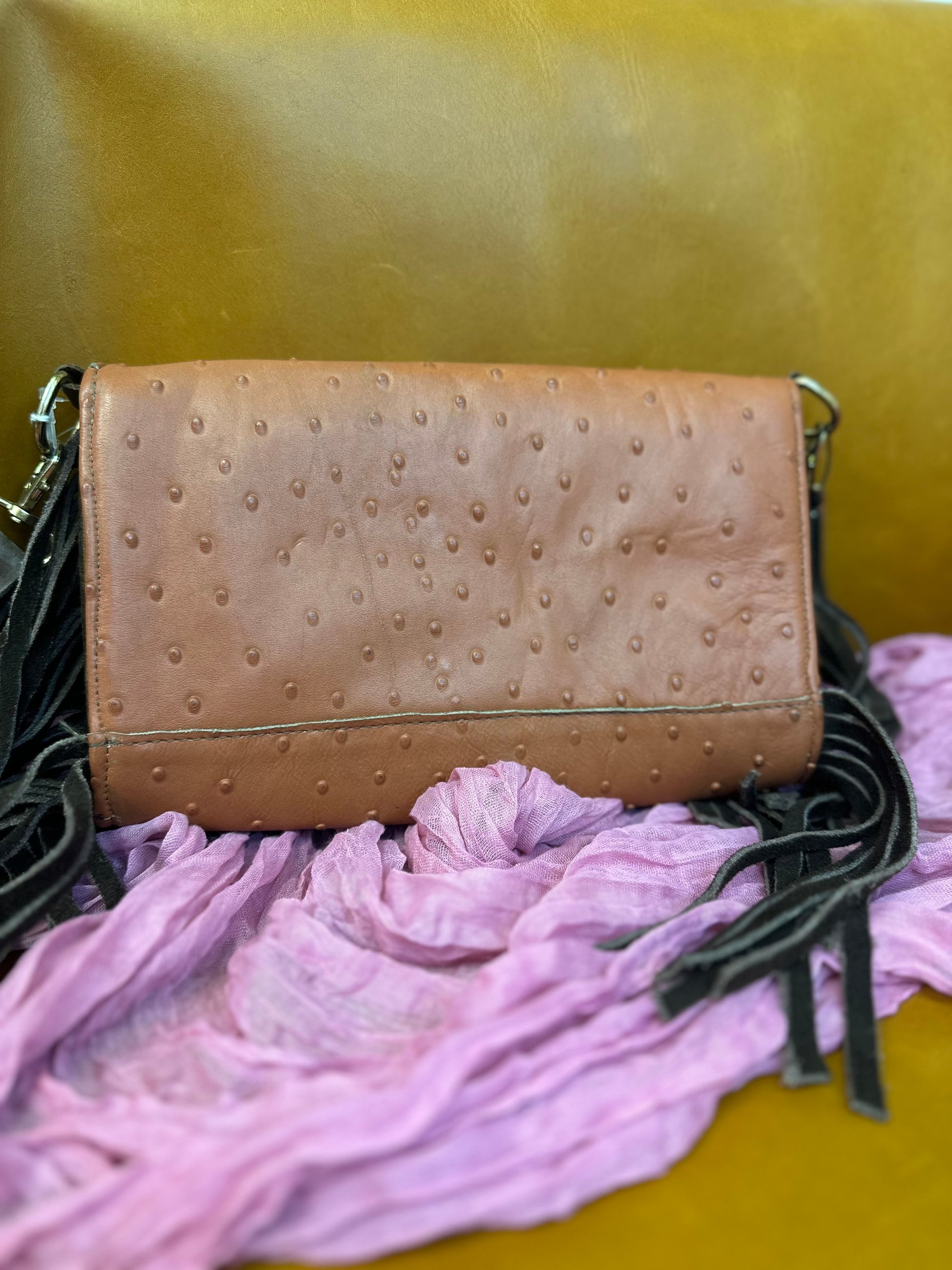 Amaya - a stunning, one of a kind bag made of beautiful ostrich leather. With its adjustable, detachable strap and 3 compartments (including a built-in card holder and zipper compartment), it's both stylish and functional. Measuring at 9.5"x2"x6", it's the perfect smaller bag for any occasion.